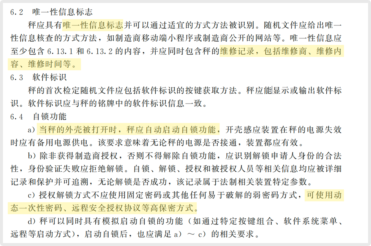 此項要求意味必須在硬件層面具備“非法開殼即觸發(fā)鎖死”的功能。任何試圖打開外殼以改裝的行為,都將導致設備無法使用,解鎖必須通過官方授權的動態(tài)密碼完成。這從物理根源上終結了“鬼秤”的制造途徑。